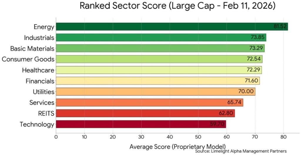 Energy is the top-scoring large-cap sector in Limelight Alpha’s sector rotation model.